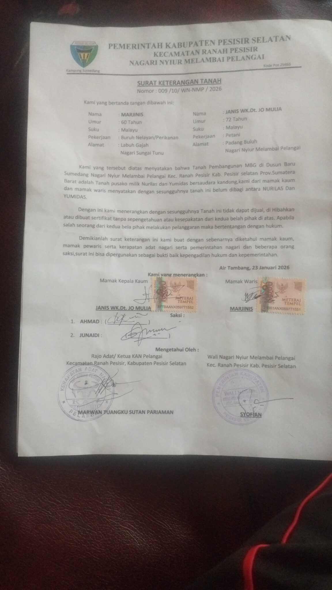 Pesisir Selatan _LSM LP KPK Komda Sumatera Barat memberikan peringatan keras kepada investor MBG Sumedang karena diduga tidak memiliki itikad baik dalam menyelesaikan sengketa tanah dengan mamak waris dan ahli waris yang berhak.Setelah di izinkan menyelesaikan Pembangunan MBG, investor berkata lain, Investor dianggap tidak kooperatif dan belum menemui Sahril bersaudara, mamak waris, dan Ninik Mamak, Serata menemui kuasa hukum untuk menyelesaikan masalah ini secara baik.