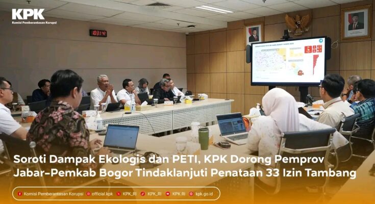 Jakarta_KPK meminta Pemprov Jabar dan Pemkab Bogor untuk segera memverifikasi ulang dan menindak tegas 23 IUP tambang Mineral Bukan Logam dan Batuan (MBLB) di Kabupaten Bogor yang terindikasi beroperasi melampaui batas wilayah pertambangan. Hal ini disampaikan dalam Rapat Koordinasi (Rakor) di Gedung Merah Putih KPK oleh Direktur Koordinasi dan Supervisi (Korsup) Wilayah II KPK, Bahtiar Ujang Purnama.