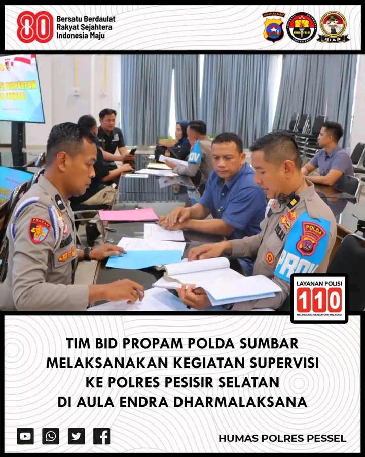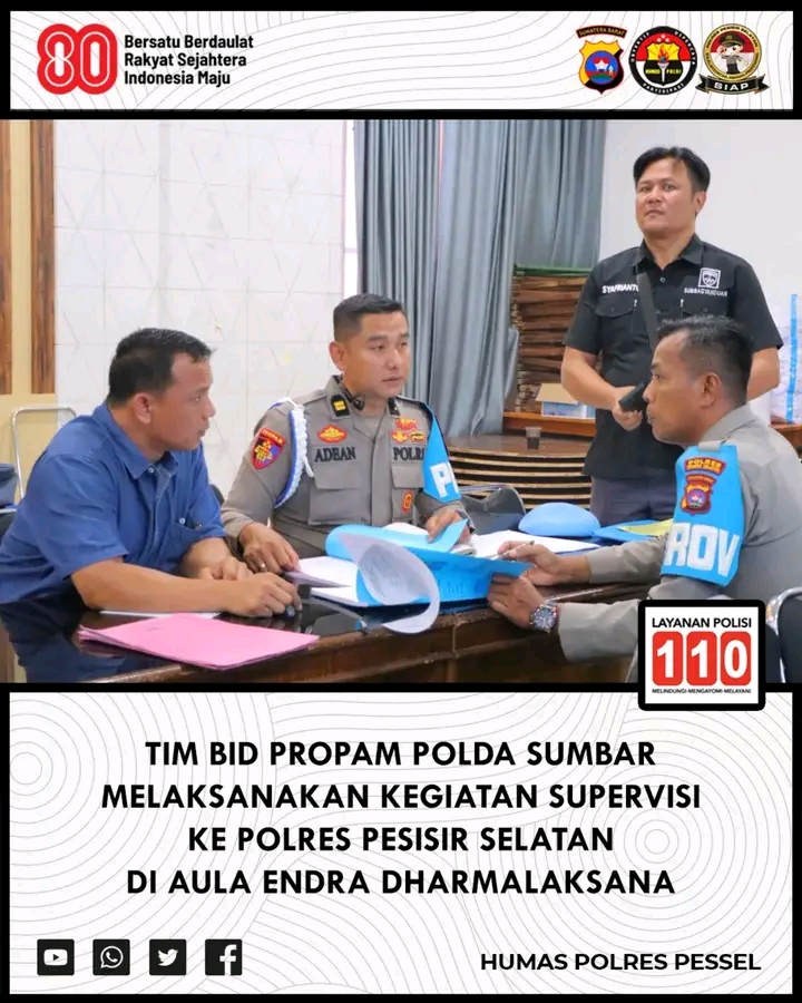 Seluruh rangkaian kegiatan supervisi berlangsung dengan aman dan tertib. Langkah ini menegaskan komitmen Polres Pesisir Selatan untuk terus berbenah dan memastikan anggotanya bekerja secara profesional, transparan, dan akuntabel. Dengan pengawasan ketat dari Bidpropam Polda Sumbar, diharapkan integritas seluruh personel dapat terjaga, sehingga kepercayaan masyarakat terhadap institusi Polri semakin meningkat.
