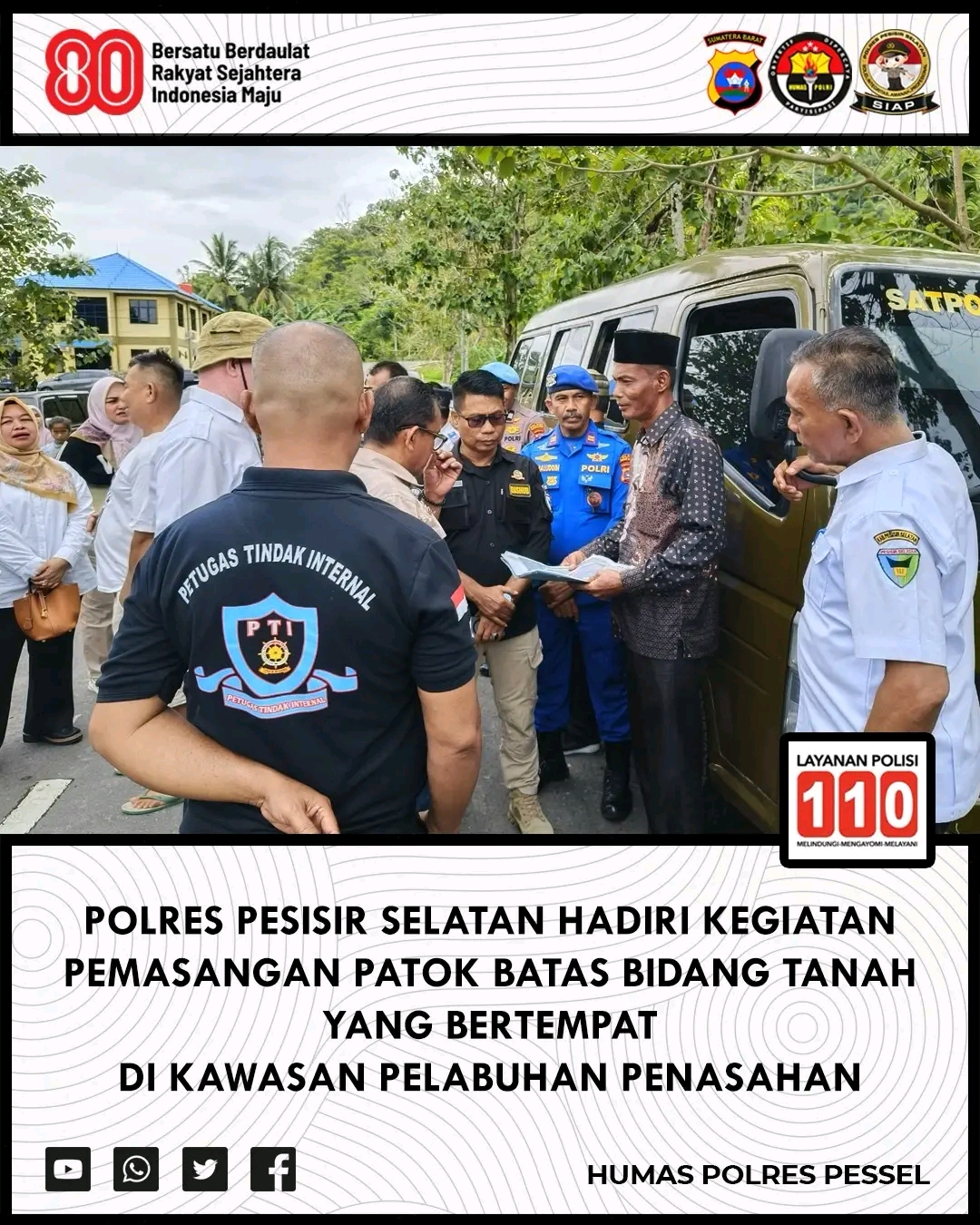 Pesisir Selatan – Polres Pesisir Selatan melalui Kasat Pol Airud Iptu Jamaludin turut hadir dalam kegiatan pemasangan Patok Batas Bidang Tanah Kawasan Pelabuhan Panasahan di Painan, Kecamatan IV Jurai. Kegiatan yang berlangsung pada Rabu, 19 November 2025, pukul 10.00 WIB, ini merupakan langkah penting Pemerintah Kabupaten Pesisir Selatan (Pemkab Pessel) dalam memastikan kejelasan dan legalitas batas aset strategis negara.