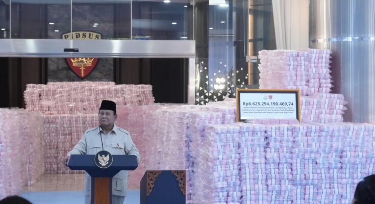 Dana tersebut berasal dari penanganan perkara tindak pidana korupsi oleh Kejaksaan RI serta kerja nyata Satgas Penertiban Kawasan Hutan (Satgas PKH). Mereka telah bekerja dengan tegas, berani, dan tidak pandang bulu.