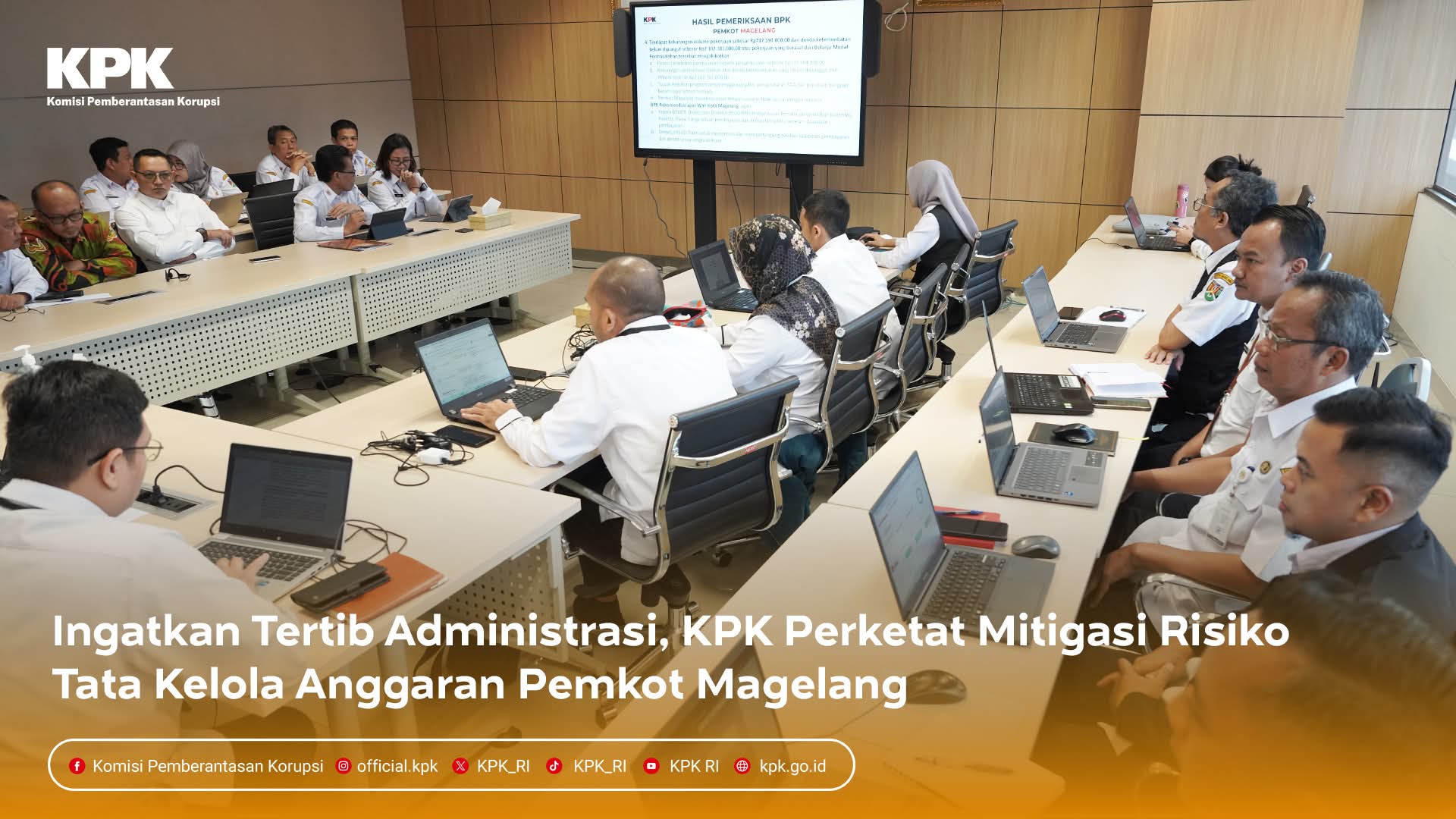 Jakarta, 4 Maret – Komisi Pemberantasan Korupsi (KPK) mengingatkan Pemerintah Kota Magelang untuk tetap transparan dan akuntabel dalam perencanaan, penganggaran, hingga eksekusi proyek. Plt. Direktur Koordinasi dan Supervisi (Korsup) Wilayah III KPK, Imam Turmudhi, menekankan hal ini dalam Rapat Koordinasi Pemantauan dan Evaluasi Tata Kelola Pemerintah Kota Magelang, Jawa Tengah, di Gedung Merah Putih KPK, Jakarta.