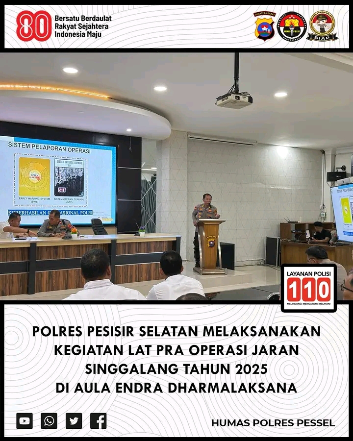 Pesisir Selatan – Polres Pesisir Selatan secara resmi memulai Latihan Pra-Operasi (LatPraOps) Jaran Singgalang 2025, sebuah langkah strategis untuk memberantas kejahatan pencurian kendaraan bermotor (curanmor) di wilayah hukumnya. Kegiatan yang dipimpin oleh Wakapolres Pesisir Selatan, Kompol Alwi Haskar, S.H., M.M., ini berlangsung pada Senin, 25 Agustus 2025, di Aula Endra Dharmalaksana Polres Pessel.