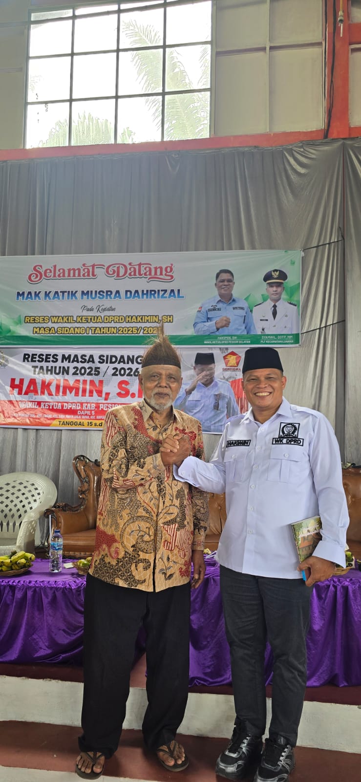 Lunang : Wakil Ketua DPRD Kabupaten Pesisir Selatan, Hakimin SH, menunjukkan keseriusannya dalam menjalankan tugas sebagai wakil rakyat dengan melakukan reses di Kecamatan Lunang pada Rabu, 17 September 2025. Kegiatan ini dihadiri oleh berbagai elemen masyarakat, termasuk Mak Katik, seorang tokoh budaya dan seniman Minangkabau terkemuka.
