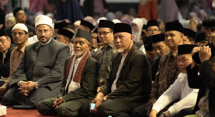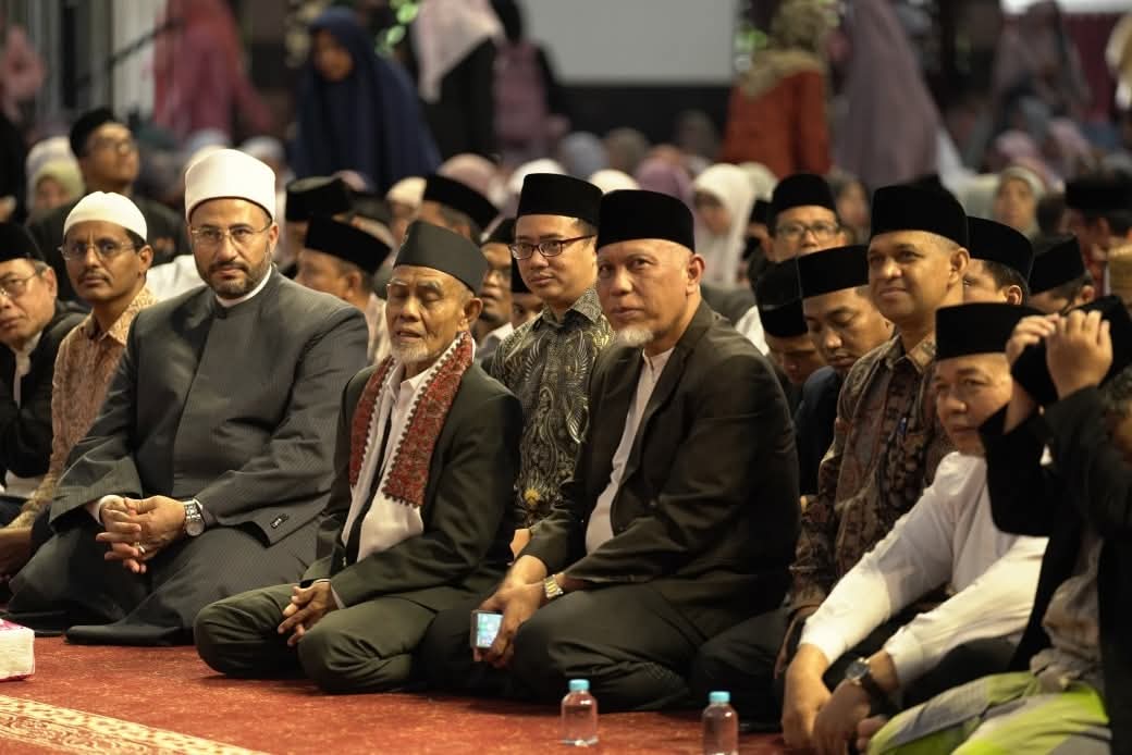 PADANG —Pemerintah Provinsi Sumatera Barat menggelar Tabligh Akbar Subuh Mubarokah bersama para tamu Konferensi Wakaf Internasional di Masjid Raya Syekh Ahmad Khatib Al-Minangkabawi, Minggu (16/11/2025). Kegiatan ini sekaligus menjadi bagian dari peringatan HUT Sumbar ke-80 dan 100 tahun Pondok Pesantren Modern Darussalam Gontor di Sumbar.