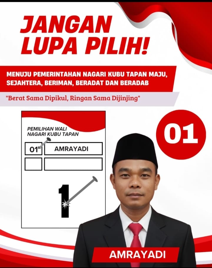 Terutama kepada Bapak Amrayadi, Wali Nagari Kubu Tapan terpilih, kami ucapkan selamat atas kemenangan yang diraih. Kami berjanji akan terus mendukung dan bekerja sama dengan Bapak Amrayadi untuk kemajuan Nagari Kubu Tapan.