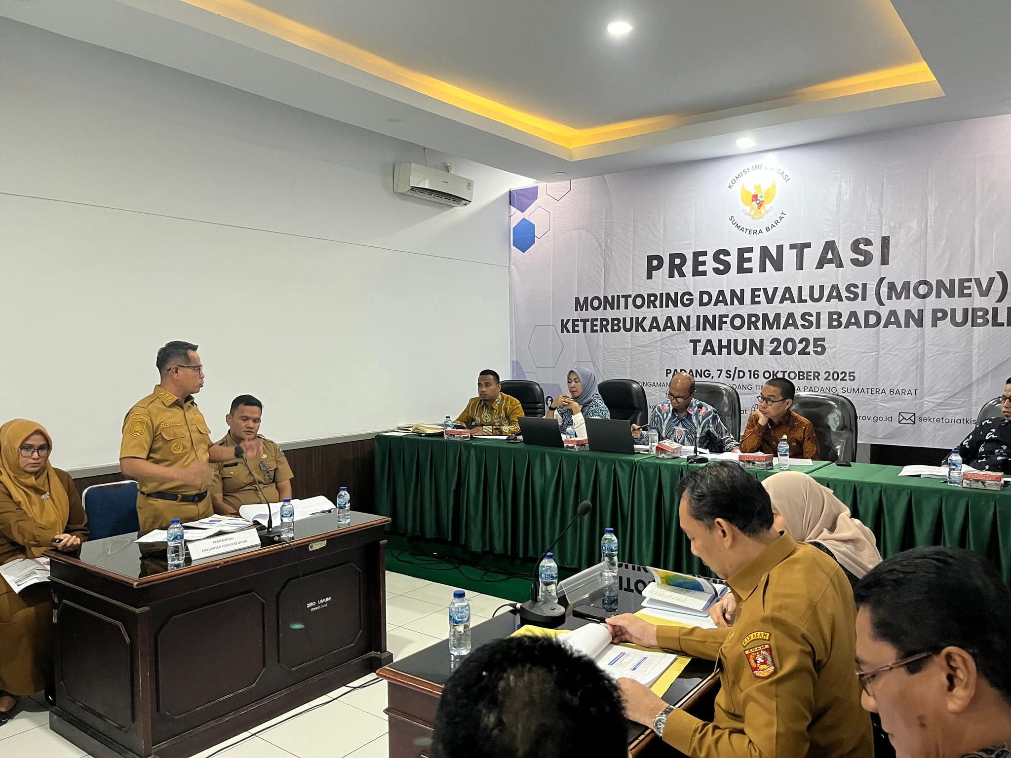 Padang : Wakil Bupati Pesisir Selatan, Dr. H. Risnaldi, memaparkan komitmen, strategi, dan inovasi Pemerintah Kabupaten Pesisir Selatan dalam mewujudkan Keterbukaan Informasi Publik (KIP) di hadapan panelis evaluasi KIP 2025 di Kantor Komisi Informasi Sumatera Barat, Padang, Senin (7/10/2025).